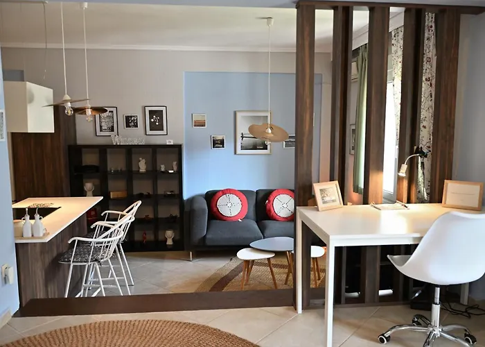 Greg'S Cozy Apartment, Up To 4 Guests In Kalamaria оснащені повністю обладнаною кухнею для тих, хто бажає самостійно готувати їжу. Розташований лише за 6 хвилин ходьби ресторан "Arodo Ouzeri Mezedopoleio" пропонує страви європейської кухні. Тессалоніки знаходиться в 15 хвилинах їзди на автомобілі.